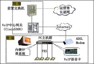 用戶端網(wǎng)關(guān)主機(jī)與計(jì)費(fèi)終端合二為一,PTA801八線VoIP語音卡的價(jià)格遠(yuǎn)低于八線VoIP網(wǎng)關(guān)。計(jì)費(fèi)系統(tǒng)以數(shù)據(jù)鏈路連接語音網(wǎng)關(guān)系統(tǒng),不再需要任何硬件計(jì)費(fèi)卡(設(shè)備)。局端可以利用各運(yùn)營(yíng)商現(xiàn)有的Cisco5300等設(shè)備。