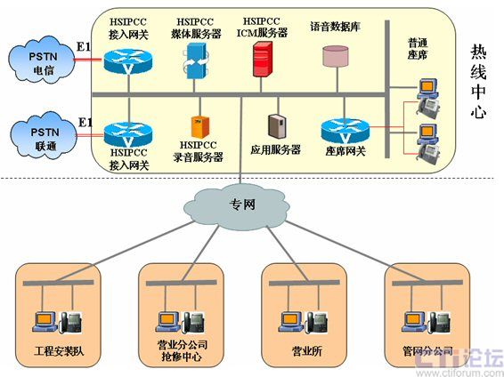 熱線中心設立8個熱線受理座席、1個班長座席、8個備用座席和1個質檢座席(均為本地座席);工程安裝隊設立1個遠程座席;營業(yè)分公司搶修中心和營業(yè)所各設立1個遠程座席;管網分公司設立1個遠程座席。