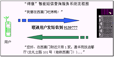 2004年4月15日和4月20日,擁有完全自主知識(shí)產(chǎn)權(quán)的語音與語言技術(shù)開發(fā)商和技術(shù)提供商北京得意音通技術(shù)有限責(zé)任公司(得意公司),在國(guó)際上率先把中文自然語言理解技術(shù)應(yīng)用在中國(guó)聯(lián)通和中國(guó)移動(dòng)短信服務(wù)平臺(tái)上,結(jié)合《精品購(gòu)物指南》報(bào)社權(quán)威、全面的信息資源,開通了北京地區(qū)餐飲領(lǐng)域智能短信查詢服務(wù)(簡(jiǎn)稱智能短信),并將進(jìn)一步支持互聯(lián)網(wǎng)平臺(tái)和WAP平臺(tái),陸續(xù)開通更豐富和更實(shí)用的智能信息服務(wù)。
