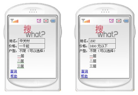 可智能識別用戶輸入的問題 和各種相關的說法, 如"1000起","2000以 下","西直門附近"等,并 能很容易增加各種語義規(guī)則 以支持更多、更靈活的輸入 |