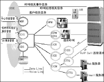 CICM CICM是Internet解決方案中的核心模塊,該模塊完成系統(tǒng)涉及到互聯(lián)網(wǎng)所有通話的控制,包括VoIP、E-mail、Chatting、畫像通話等。當(dāng)一個網(wǎng)上呼叫呼入時,由CICR返回所分配的話務(wù)員相關(guān)信息(如IP),然后CICM將該信息送給客戶,使網(wǎng)絡(luò)聊天和Web到電話的通話得以同步。
