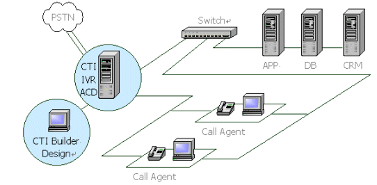 。。CTI Builder本身是一個軟交換機,具有普通程控交換機的功能,如:分機切轉(zhuǎn)、外線呼入、內(nèi)線呼出、轉(zhuǎn)接電話、代接電話等等,同時還具有一些高級功能如:語音信箱、排隊機、內(nèi)線組呼叫、高級選線等功能。也就是說,系統(tǒng)已經(jīng)提供了呼叫中心通用的功能,用戶只需要定義自己的業(yè)務(wù)而不必關(guān)心呼叫中心的內(nèi)部交換。