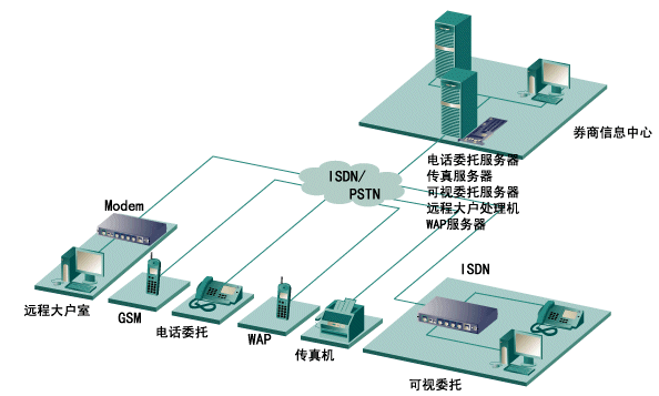 1. 同一塊Diva Server PRI (30B+D)卡便能把券商的所有業(yè)務都集成在一起: 電話傳真委托、可視委托、遠程大戶室、WAP查詢,短消息服務等,使方案的集成度做到了最高,性價比做到了最高。