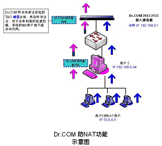 實現(xiàn)的原理類似于VLAN技術(shù),通過客戶端對合法用戶數(shù)據(jù)包動態(tài)地增加一個識別標(biāo)簽,再由網(wǎng)關(guān)對這些數(shù)據(jù)包標(biāo)識去掉,轉(zhuǎn)發(fā)到上聯(lián)端口。而非法的用戶,由于數(shù)據(jù)包沒有合法的標(biāo)簽,被網(wǎng)關(guān)過濾掉。不僅能夠?qū)?nèi)網(wǎng)用戶進(jìn)行很好地防代理控制,又不影響局域網(wǎng)和城域網(wǎng)的內(nèi)網(wǎng)服務(wù)器和外部Internet服務(wù)器的正常通信。