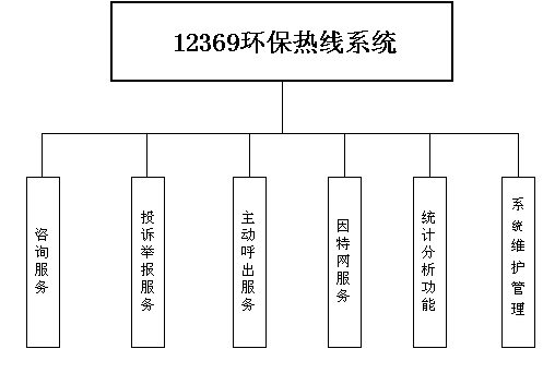 人民群眾利用電話、傳真、電子郵件、因特網(wǎng)、手機、短消息等撥打國家環(huán)?偩忠(guī)定的統(tǒng)一特服號碼(12369)進入12369環(huán)保熱線系統(tǒng),本系統(tǒng)依托環(huán)保局各類業(yè)務技術支持系統(tǒng)和網(wǎng)絡系統(tǒng),通過人工受理或自動語音服務等方式全天24小時不間斷地為客戶提供各種服務。