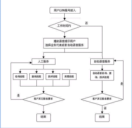客戶也可以選擇自動語音服務方式,根據(jù)系統(tǒng)的語音提示輸入按鍵,選擇類別,將自己所需要的服務要求以及自己的聯(lián)系方式信息以留言錄音的方式保存在系統(tǒng)中。系統(tǒng)同時還支持自動傳真方式,客戶可以通過傳真機進入本系統(tǒng),通過按鍵選擇傳真方式,將所需要的服務要求等的文本內(nèi)容傳真給系統(tǒng),系統(tǒng)自動接受并存入數(shù)據(jù)庫。