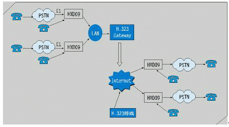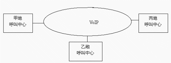 PRI,ISDN BRI,E&M或VoIP 等接口實現(xiàn),每條話路只須8Kbit/s帶寬,并支持網(wǎng)絡優(yōu)化路由及D通道座席預約,大大降低網(wǎng)絡連接費用,提高運行效率。目前主流的方式是采用VoIP技術。如下圖所示: