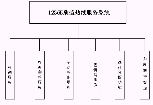 系統(tǒng)由一系列相對獨(dú)立而又緊密聯(lián)系的模塊軟件組成,集自動語音服務(wù)、自動留言服務(wù)、人工座席(質(zhì)量技術(shù)監(jiān)督局工作人員)服務(wù)、信息資料處理等于一體,提供了一套完整的12365質(zhì)監(jiān)熱線服務(wù)系統(tǒng)的解決方案。各個功能模塊之間即可獨(dú)立運(yùn)行,也可自由組合進(jìn)行工作,各質(zhì)量技術(shù)監(jiān)督局可以根據(jù)各自的特點(diǎn)靈活的進(jìn)行模塊配置,為質(zhì)量技術(shù)監(jiān)督局量身定做。