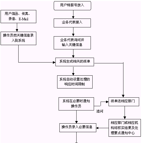 人民群眾打入電話后,當(dāng)系統(tǒng)的自動語音應(yīng)答子系統(tǒng)無法解決客戶問題時,客戶可選擇人工服務(wù),由企業(yè)客戶服務(wù)代表直接接聽客戶電話,處理并解決客戶問題。此時客戶同座席話務(wù)人員直接溝通,并同時記錄下該客戶的聯(lián)系方式,將相關(guān)數(shù)據(jù)添加入系統(tǒng)數(shù)據(jù)庫;也可以在數(shù)據(jù)庫的支持下回答質(zhì)量監(jiān)督咨詢、投訴等。客戶也可以選擇自動語音服務(wù)方式,根據(jù)系統(tǒng)的語音提示輸入按鍵,選擇類別,將自己的投訴和建議以及自己的聯(lián)系方式信息以留言錄音的方式保存在系統(tǒng)中。系統(tǒng)同時還支持自動傳真方式,客戶可以通過傳真機(jī)進(jìn)入本系統(tǒng),通過按鍵選擇傳真方式,將自己的意見建議等的文本內(nèi)容傳真給系統(tǒng),系統(tǒng)自動接受并存入數(shù)據(jù)庫。