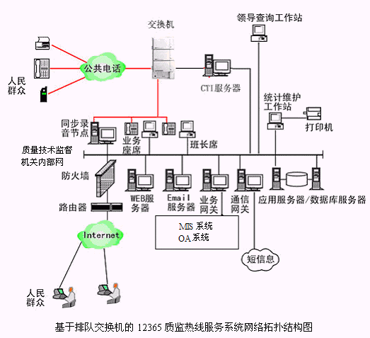 基于排隊交換機(jī)的12365質(zhì)監(jiān)熱線服務(wù)系統(tǒng)網(wǎng)絡(luò)拓?fù)浣Y(jié)構(gòu)圖