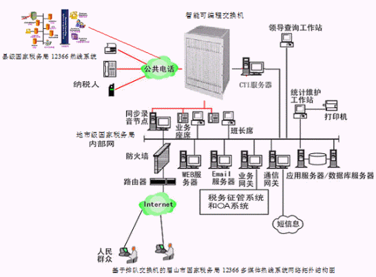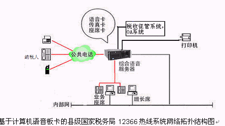 對于縣級國家稅務(wù)局12366多媒體納稅服務(wù)熱線系統(tǒng),則建議使用基于計算機語音板卡的方式,可以減少投資,同時具有良好的系統(tǒng)性能;對于地市級-縣級國家稅務(wù)局12366多媒體納稅服務(wù)熱線系統(tǒng),可選用排隊交換機作為語音接入設(shè)備,以保障系統(tǒng)的高可靠性和穩(wěn)定性;大大提高了系統(tǒng)的適應(yīng)面。
