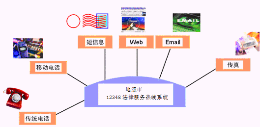 居民利用電話、傳真、手機(jī)等撥打某一特服號(hào)碼(如12348)進(jìn)入地級(jí)市法律服務(wù)熱線系統(tǒng),本系統(tǒng)依托地級(jí)市司法行政部門/法院各類業(yè)務(wù)技術(shù)支持系統(tǒng)和網(wǎng)絡(luò)系統(tǒng),通過人工受理或自動(dòng)語(yǔ)音服務(wù)等方式全天24小時(shí)不間斷地為人民群眾提供各種法律服務(wù);形成了對(duì)外服務(wù)于百姓的無(wú)形窗口,對(duì)內(nèi)管理、分析、決策系統(tǒng)相結(jié)合的多媒體呼叫中心。