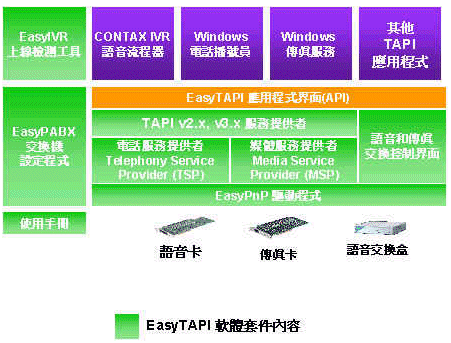 | 軟件套件名稱 | EasyTAPI | CT-Access | Native API |
