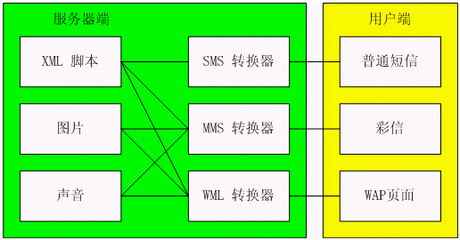基于上述的因素,北京市萬隆然博科技有限責任公司率先在國內(nèi)推出了無線互連游戲平臺,把游戲的快速開發(fā)、游戲的運行引擎和游戲的客戶服務(wù)管理集成在一體。方便了短訊運營商的運營。同時,然博科技通過分析各類游戲的特點和無線交互方式的特點。具有獨創(chuàng)性的推出了一種游戲描述XML格式。通過然博科技提供的離線工具,游戲策劃人可以自己編寫腳本,自己定義場景,進行仿真。同時,上傳到實際運行的服務(wù)器端。真正的實現(xiàn)了短信門戶的個人創(chuàng)作工具。使得短信門戶真正的可以與傳統(tǒng)的Web門戶有相同的運營模式。ICP可以通過出賣短信服務(wù)器的硬盤空間來實現(xiàn)與內(nèi)容宿主共同盈利的模式。