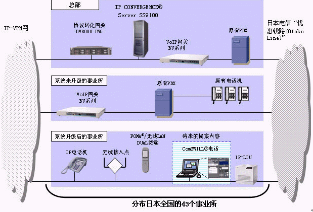 采用企業(yè)內部IP Centrex系統(tǒng)連接其在日本的43個事務所,一年可減少1億日元成本