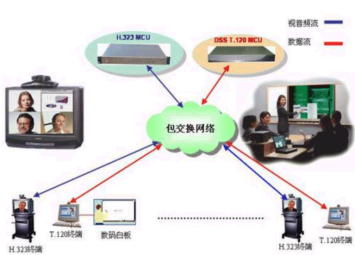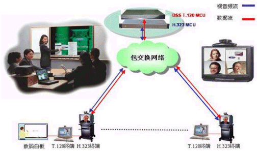 DSS系統(tǒng)可以和任何符合H.320/H.323標(biāo)準(zhǔn)的MCU配合,實現(xiàn)會議電視系統(tǒng)中的數(shù)據(jù)功能。