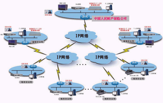 中國人民財產(chǎn)保險股份有限公司,是中國內(nèi)地最大的非壽險公司,香港證交所上市公司。經(jīng)過50多年的發(fā)展,中國人保財險公司已經(jīng)發(fā)展成為網(wǎng)點遍布全國31個省市區(qū),共有營業(yè)機構4000余個的大型商業(yè)公司。為提高辦公效率,降低差旅成本,中國人保財險公司決定建設覆蓋從總公司、省分公司到地市分公司的視頻會議系統(tǒng),項目總容量達600多個節(jié)點,采用兩級級連方式組網(wǎng),要求系統(tǒng)具備視頻、音頻、數(shù)據(jù)交互功能,。
