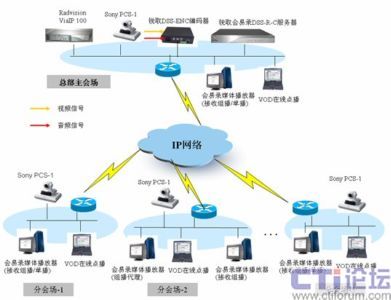 如上圖所示,攀鋼集團視頻會議系統(tǒng)基于IP的組網(wǎng),MCU采用RADVISION VIAIP100綜合視訊交換平臺,終端采用SONY