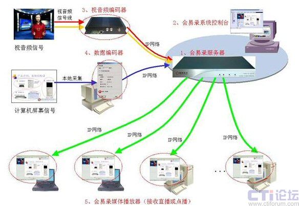 同時系統(tǒng)具備直播、點播功能,用戶使用IE瀏覽器即可接收會議的實時直播或進行事后點播,通過直播或點播可同步觀看到會議中視音頻和數(shù)據(jù)內(nèi)容,觀看會議的效果如同身處會場之后。會易錄極大地擴展了視頻系統(tǒng)的功能和應(yīng)用,適合任何已有或擬建視頻會議系統(tǒng)的用戶使用。