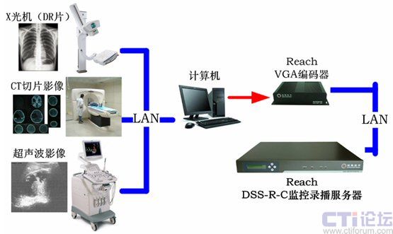- 由于當(dāng)前的大多醫(yī)療設(shè)備,如X光機(jī)、CT機(jī)均擁有網(wǎng)絡(luò)接口并支持,由計(jì)算機(jī)通過(guò)網(wǎng)絡(luò)即可采集醫(yī)療設(shè)備中的影像,并采用VGA編碼器采集計(jì)算機(jī)中的CR或DR片、CT片、演示文件(PPT、WORD、EXCEL);