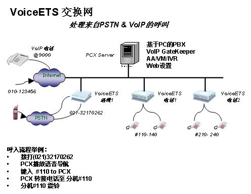 。。VoiceETS,是架構(gòu)在企業(yè)局域網(wǎng)絡(luò)上的電話系統(tǒng),無(wú)須傳統(tǒng)電話交換機(jī),無(wú)須附加的IVR系統(tǒng)和VOIP網(wǎng)關(guān),以較低成本和較高的集成性,完成幾乎從電話交換機(jī)和VOIP整合到IVR、IP呼叫中心等所有企業(yè)級(jí)應(yīng)用。