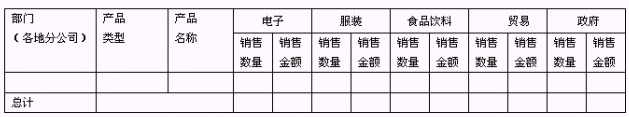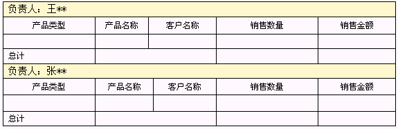 作為分公司銷售經(jīng)理,需要查看分公司每個(gè)銷售員的銷量統(tǒng)計(jì),便于向銷售總監(jiān)做好匯報(bào),需要同時(shí)知道不同產(chǎn)品類型的銷量?梢酝ㄟ^(guò)分組報(bào)表來(lái)實(shí)現(xiàn),如下圖: