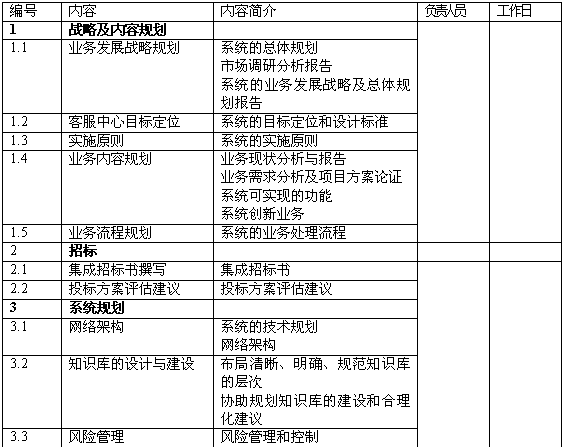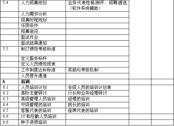 6.提出了未來(lái)客戶滿意度、分流柜面比率、產(chǎn)品促銷量等方面的量化比率;針對(duì)客服中心的主要業(yè)務(wù)提供量化的目標(biāo),并提出達(dá)成目標(biāo)的前提條件;對(duì)未來(lái)人員和系統(tǒng)規(guī)模提供量化預(yù)估。