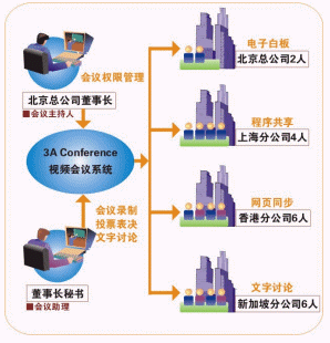 在會(huì)議中,副總經(jīng)理使用電子白板向各位主管說(shuō)明了公司的整體規(guī)劃,上海分公司經(jīng)理還通過(guò)程序共享功能,將自己寫的某地市場(chǎng)開(kāi)拓規(guī)劃書初稿共享出來(lái),與所有與會(huì)者討論;