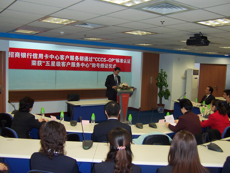 經(jīng)過長(zhǎng)達(dá)8個(gè)月時(shí)間的準(zhǔn)備和嚴(yán)格的認(rèn)證審核,由中國(guó)信息化推進(jìn)聯(lián)盟客戶關(guān)系管理專業(yè)委員會(huì)常務(wù)副主任郭晨東先生親自掛帥組成的項(xiàng)目評(píng)審專家小組從領(lǐng)導(dǎo)能力、戰(zhàn)略規(guī)劃與部署、客戶價(jià)值、績(jī)效衡量與分析、現(xiàn)場(chǎng)管理、人員管理、流程管理、運(yùn)營(yíng)績(jī)效結(jié)果等八個(gè)范疇對(duì)招商銀行信用卡中心客戶服務(wù)部進(jìn)行了全面而嚴(yán)格的審核,涉及五大類上百項(xiàng)詳細(xì)的運(yùn)營(yíng)績(jī)效指標(biāo),歷經(jīng)初審評(píng)估、現(xiàn)場(chǎng)初審、初審評(píng)估報(bào)告提交與確認(rèn)、標(biāo)準(zhǔn)試運(yùn)行、績(jī)效全面提升、最終評(píng)審等階段,最終審核確認(rèn)招商銀行信用卡中心客戶服務(wù)完全符合并部分超越《全國(guó)呼叫中心運(yùn)營(yíng)績(jī)效標(biāo)準(zhǔn)》(CCCS-OP-2003)的各項(xiàng)標(biāo)準(zhǔn)指標(biāo)和要求,于2005年1月31日正式批準(zhǔn)招商銀行信用卡中心通過該標(biāo)準(zhǔn)的五星級(jí)認(rèn)證,授予“五星級(jí)客戶服務(wù)中心”稱號(hào)。