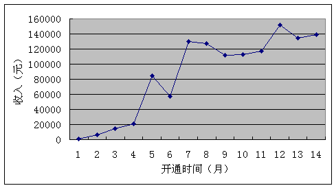 還是說回來。河北鐵通這個(gè)業(yè)務(wù)從60線開始穩(wěn)健起步,如圖所示,在3個(gè)月的磨合時(shí)間里,它主要依靠口碑傳播,每個(gè)月才兩萬元的收入,業(yè)務(wù)雖然開始贏利,但是并不可觀,怎樣才能快速提升業(yè)務(wù)價(jià)值?