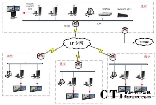 MCU,1臺(tái)RSS2000錄播服務(wù)器,9臺(tái)HDX7002XL組成,在應(yīng)用上分為兩部分:主要核心設(shè)備---采用寶利通(POLYCOM)最新技術(shù)的多點(diǎn)控制單元RMX1016C及高清錄播RSS2000,滿足培訓(xùn)中心對(duì)整個(gè)系統(tǒng)的會(huì)議召集及管理,系統(tǒng)還可以進(jìn)行高清的錄播直播,把相關(guān)的培訓(xùn)內(nèi)容制作成培訓(xùn)課件存檔分發(fā)給培訓(xùn)學(xué)員;其他各地單位設(shè)備:分別采用高清硬件終端HDX7002及高清實(shí)物展臺(tái)、高清DV等各類會(huì)議室設(shè)備,終端支持雙流、實(shí)物展臺(tái)及移動(dòng)DV圖像的輸入,根據(jù)不同的培訓(xùn)需求切換不同的圖像場景,為培訓(xùn)中心設(shè)計(jì)了一套完整視頻培訓(xùn)解決方案。