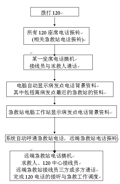 120急救中心接到求救電話后,120中心接線員在系統(tǒng)的配合下,自動(dòng)呼通急救站,實(shí)現(xiàn)調(diào)度功能