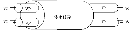 由ATM交換機和ATM末端設備組成。ATM交換機負責網(wǎng)絡中的信元傳輸,它接收來自一個ATM末端或另一個ATM交換機的信元,然后讀取和更新信元頭信息,并迅速將信元送往目的地的輸出接口。每個ATM末端設備都有一個ATM網(wǎng)絡接口適配器。ATM末端可以是工作站、路由器、數(shù)據(jù)服務單元等。 ATM網(wǎng)絡是面向連接的。有兩種連接類型,一種是以虛路徑標識符為標志的虛路徑,一種是以虛路徑標識符(VPI)和虛信道標識符(VCI)的組合為標志的虛信道。如下圖所示: |