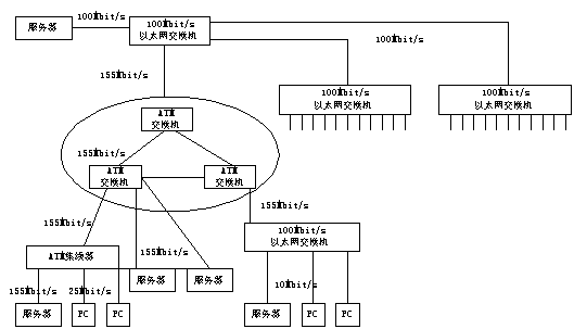 以ATM為骨干網(wǎng)的企業(yè)局域網(wǎng) 現(xiàn)在幾乎所有的ATM廠商和大多數(shù)著名網(wǎng)絡廠商都提供使用光纖的155Mbit/s ATM主干網(wǎng)交換機,有的還提供25Mbit/s的ATM桌面產品。從擴展性來講,FDDI的最高傳輸速率為100Mbit/s,并由多臺設備共享。ATM的傳輸速率正在向幾吉比特率至幾十吉比特率發(fā)展,ATM作為企業(yè)主干網(wǎng)能否得到普及應用,主要取決于價格和標準的完善程度。