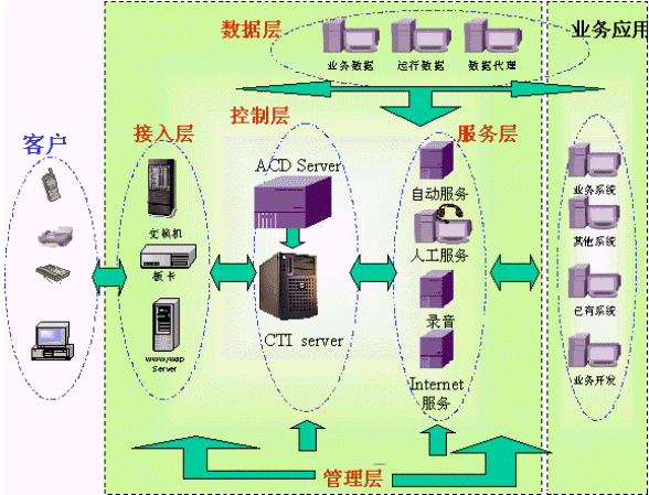 通過租用信息智能交互平臺(tái)的坐席資源,企業(yè)可以迅速、方便地建立自己的客戶服務(wù)中心,而不需為規(guī)劃、技術(shù)方案、場(chǎng)地、特服號(hào)申請(qǐng)、人員培訓(xùn)等自行建立客戶服務(wù)中心所面臨的種種困難。企業(yè)客戶服務(wù)利用鐵通本地網(wǎng)絡(luò)資源及VPN技術(shù),可將企業(yè)局域網(wǎng)與信息智能交互平臺(tái)建立網(wǎng)絡(luò)通道,使得企業(yè)租用的客戶服務(wù)中心可以直接關(guān)聯(lián)到企業(yè)已有的業(yè)務(wù)系統(tǒng)、網(wǎng)絡(luò)系統(tǒng)中去,實(shí)現(xiàn)信息充分互通、資源共享,也有利于企業(yè)自身的二次開發(fā)。