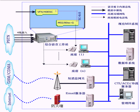 該95598客服系統(tǒng)采用世界知名品牌的Intel Dialogic板卡,構(gòu)建在強大的、開放的CTI應(yīng)用開發(fā)平臺AnyTouch上,開發(fā)出符合縣級供電公司的客戶服務(wù)業(yè)務(wù),并完全根據(jù)《國電95598客戶服務(wù)中心系統(tǒng)規(guī)范》,通過靈活、方便的圖形化開發(fā)工具或接口,與供電公司已有的用電MIS系統(tǒng)緊密結(jié)合,是一套強大的、完整的95598客戶服務(wù)系統(tǒng)。