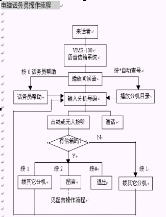 1. 在使用了VMS-100 Plus語音信箱服務(wù)器電腦話務(wù)員智能轉(zhuǎn)接功能的情況下,當(dāng)分機(jī)占線或無人接聽時如果您選擇了留言,系統(tǒng)便將您的電話接通至相應(yīng)的留言信箱。