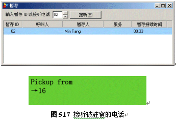 接通后,如果通話內(nèi)容很緊急而又不方便在會(huì)議室進(jìn)行溝通,此時(shí),用戶可以按下話機(jī)上的“Park”按鈕,此時(shí)對(duì)方通話被導(dǎo)入到一段音樂(lè)(背景音中設(shè)定的音樂(lè))。記住屏幕上提示的駐留號(hào)碼,即可掛機(jī):