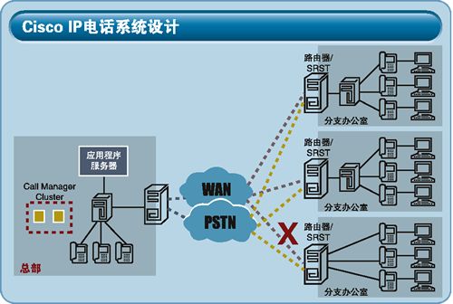 思科公司提供的IP電話系統(tǒng)由IP電話呼叫控制服務器、IP電話機和路由器構(gòu)成,是一個高可用性、功能強大、應用靈活的解決方案。