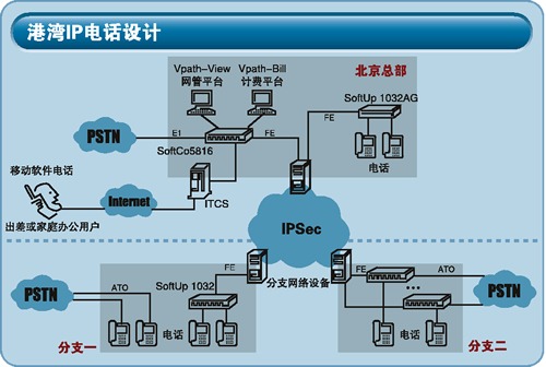 對于分支機構(gòu),港灣公司的解決方案超出了我們的預期。他們給予了兩套方案,第一種方案和我們標書中的基本要求一樣,提供了內(nèi)部通信的單獨IP話機,同時保留本地直線電話。第二種方案中則全部遷移到IP電話平臺中,依賴SoftUp201/202