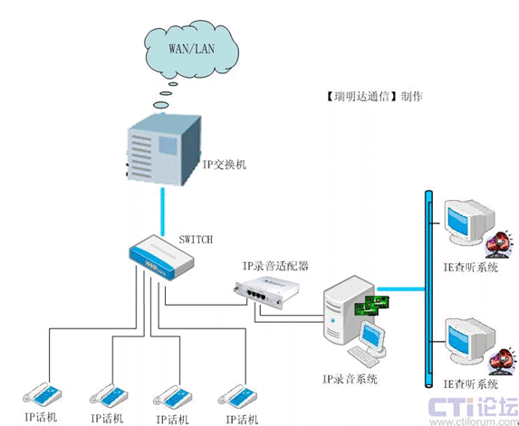 【瑞明達(dá)通信】是國內(nèi)較早從事專業(yè)計算機(jī)電話語音系統(tǒng)(CTI)產(chǎn)品的開發(fā)商, 在客戶交互式解決方案行業(yè)中有十多年的從業(yè)經(jīng)驗(yàn),具備雄厚的語音產(chǎn)品開發(fā)能力。最近幾年,基于 IP 的下一代通信,正在以前所未有的速度改變著全世界的通信架構(gòu)和商業(yè)格局!救鹈鬟_(dá)通信】作為錄音技術(shù)的領(lǐng)先廠商,就已經(jīng)具有前瞻性的潛心致力于基于IP通訊線路的多媒體記錄解決方案的研發(fā),RMD_VoIPlog錄音系統(tǒng)是由【瑞明達(dá)通信】自行開發(fā)研制的新一代IP錄音系統(tǒng)。該系統(tǒng)在記錄VoIP語音的同時,所需的語音資源通過軟件方式或硬件平臺直接由網(wǎng)絡(luò)中的RTP等數(shù)據(jù)流獲取,無須和座席分機(jī)或中繼線進(jìn)行并接,因此是一種軟件/硬件分別實(shí)現(xiàn)的錄音系統(tǒng),是真正的基于IP 的錄音解決方案。RMD_VoIPlog錄音系統(tǒng),是以數(shù)字記錄、數(shù)據(jù)庫查詢、光盤存儲等先進(jìn)技術(shù)為手段,為通話語音的錄制、管理提供了一種先進(jìn)、科學(xué)而又行之有效的方法。二、RMD_VoIPlog錄音系統(tǒng)運(yùn)行環(huán)境