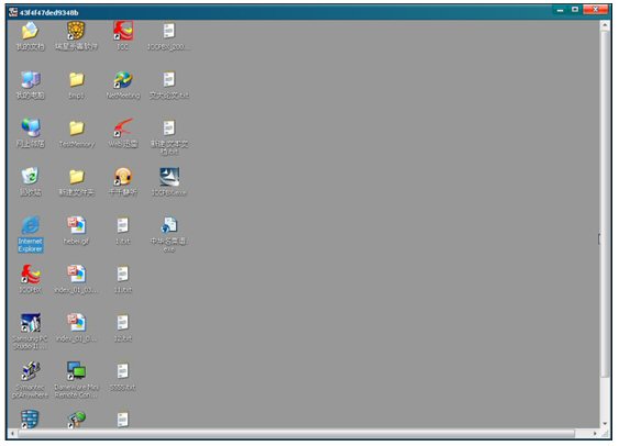 同時彈出一個ICC的共享框,共享框里出現(xiàn)的就是納稅人的桌面(納稅人桌面的背景將被系統(tǒng)自動設(shè)置成一種單一的色彩,如下圖納稅人桌面背景被設(shè)置成灰色,所以坐席看到納稅人的桌面都是單一的顏色),坐席把鼠標(biāo)放在共享框里,就可以像操作自己的電腦一樣來操作納稅人的電腦了。如下圖: