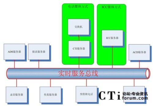 從上圖可以看出,通過實(shí)時(shí)服務(wù)總線,電話媒體方式和ICC媒體方式與其他服務(wù)的調(diào)用關(guān)系保持一致即可: