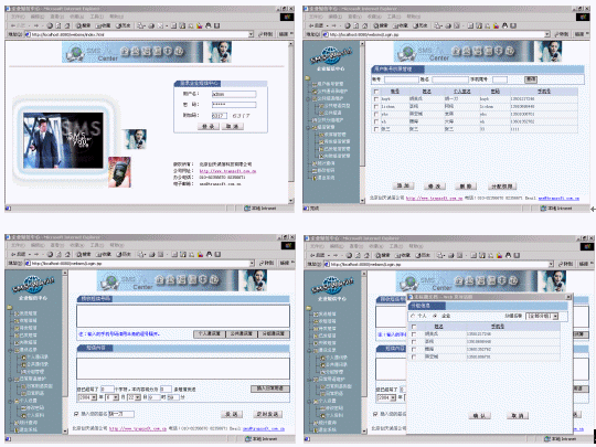 企業(yè)里的每個用戶要實現短信發(fā)送,僅需一臺電腦,然后利用瀏覽器就可以實現分組發(fā)送(如:會議通知、緊急通知)、定時群發(fā)(如:提醒短信、恭賀短信、祝福短信)、以及接收工作情況匯報短信等,系統提供通訊薄管理,可編輯常用短語。服務器端支持多個GSM設備群發(fā),滿足不同發(fā)送短信量的需要?煨┫螺d系統的動畫演示,新增功能多多。!