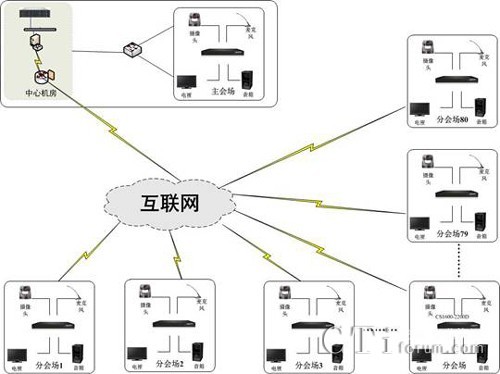 華平股份為雛鷹農(nóng)牧建設(shè)的視頻會(huì)議系統(tǒng)覆蓋雛鷹農(nóng)牧辦公區(qū)總部和新鄭周邊鄉(xiāng)村70多個(gè)養(yǎng)殖場(chǎng),以及開(kāi)封尉氏分公司。辦公區(qū)總部使用一臺(tái)MCU,總部網(wǎng)絡(luò)使用聯(lián)通百兆光纖接入和移動(dòng)10兆光纖接入。其他分會(huì)場(chǎng)全部采用電話(huà)線(xiàn)ADSL撥號(hào)上網(wǎng)。主會(huì)場(chǎng)采用CS2800全高清視頻會(huì)議終端,達(dá)到高清視頻效果;分會(huì)場(chǎng)采用CS1800標(biāo)清終端+AV300標(biāo)清攝像機(jī),滿(mǎn)足標(biāo)清視頻通信應(yīng)用的需求。