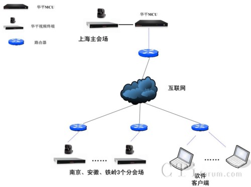 在系統(tǒng)的架設(shè)上,華平為上航特種車(chē)公司在雙線托管機(jī)房架設(shè)了一臺(tái)MCU服務(wù)器,用雙線機(jī)制解決電信、網(wǎng)通的網(wǎng)絡(luò)瓶頸問(wèn)題,同時(shí)實(shí)現(xiàn)視音頻的合成和轉(zhuǎn)發(fā);在上海、南京、安徽、鐵嶺4個(gè)會(huì)議室各部署一臺(tái)標(biāo)清硬件終端,達(dá)到標(biāo)清品質(zhì)的視頻通訊應(yīng)用;同時(shí)針對(duì)移動(dòng)參會(huì)用戶,華平為其配置了4個(gè)點(diǎn)的軟件客戶端,使上航特種車(chē)公司相關(guān)領(lǐng)導(dǎo)和員工在出差情況下也可以通過(guò)筆記本電腦參會(huì)。此系統(tǒng)設(shè)計(jì)不僅具備良好的視音頻通訊效果,同時(shí)還具備強(qiáng)大的數(shù)據(jù)輔助功能,可滿足會(huì)議、培訓(xùn)甚至是遠(yuǎn)程協(xié)作的應(yīng)用需求。