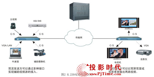 科達(dá)H.239雙視頻流具有非常靈活的輔助視頻輸入和輸出特性。其中,輸入支持VGA、復(fù)合端子、S端子、以太網(wǎng)等多種接口,PC桌面講稿等內(nèi)容可通過(guò)VGA輸入發(fā)言會(huì)場(chǎng)終端,不方便直接接入的PC桌面可借助LAN通過(guò)以太網(wǎng)輸入發(fā)言會(huì)場(chǎng)終端,資料碟片(VCD/DVD)、實(shí)物外觀(輔助攝像機(jī))可通過(guò)復(fù)合端子、S端子輸入發(fā)言會(huì)場(chǎng)終端。雙流輸出支持雙屏雙顯和雙屏單顯,雙屏雙顯時(shí),主視頻和輔助視頻通過(guò)兩臺(tái)顯示設(shè)備分別輸出,雙屏單顯時(shí),主視頻和輔助視頻以畫(huà)中畫(huà)或一左一右形式通過(guò)單臺(tái)顯示設(shè)備輸出。