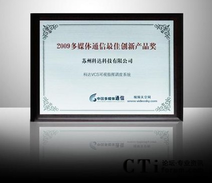 CTI論壇(ctiforum)3月29日消息(記者 袁青):近日,在《中國(guó)多媒體通信》雜志及視頻天空網(wǎng)強(qiáng)勢(shì)啟動(dòng)的“2009年度中國(guó)多媒體通信行業(yè)大獎(jiǎng)”評(píng)選活動(dòng)中,科達(dá)VCS可視指揮調(diào)度系統(tǒng)以其產(chǎn)品的專業(yè)性、直觀性、準(zhǔn)確性及有效性榮獲2009中國(guó)多媒體通信行業(yè)“創(chuàng)新產(chǎn)品獎(jiǎng)”。