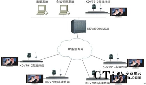 各會(huì)場(chǎng)配置KDV7910高清視頻終端,該終端是業(yè)內(nèi)第一款真正支持1080P的高清視頻會(huì)議終端,具有非凡的畫(huà)面質(zhì)量、音頻效果和卓越的雙流協(xié)作能力。各終端與中心點(diǎn)MCU之間通過(guò)全省財(cái)政IP通信專網(wǎng)相連。