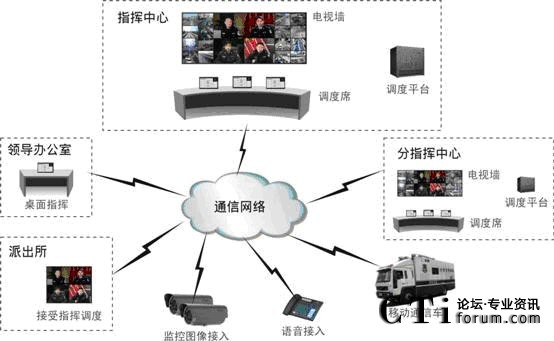 系統(tǒng)支持大型或中小型調(diào)度指揮中心部署,也支持在領(lǐng)導(dǎo)辦公室部署小型指揮點(diǎn);各個(gè)前端點(diǎn)可通過E1專線或以太網(wǎng)接入中心平臺(tái),也可通過衛(wèi)星、無線等方式支持移動(dòng)終端的接入。